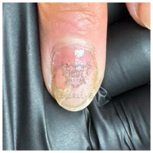 まだネイルベッド(爪の土台)にはしっかり付いている状態です。