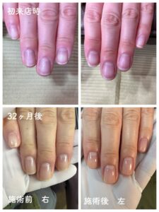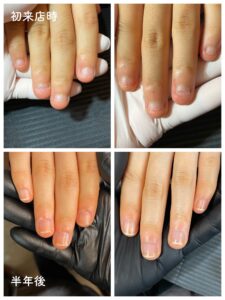 通い続けることで、爪の色・厚み・形が変わっていくのが分かります。